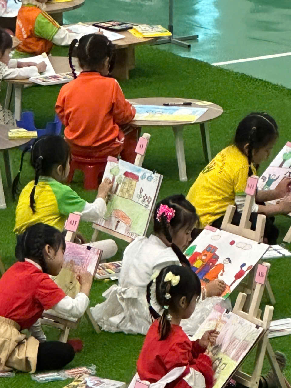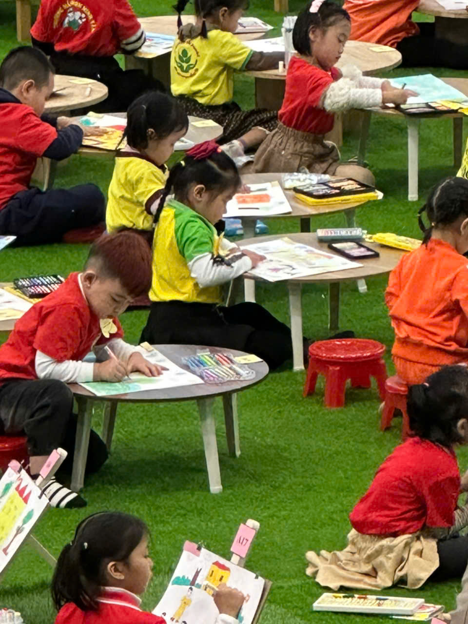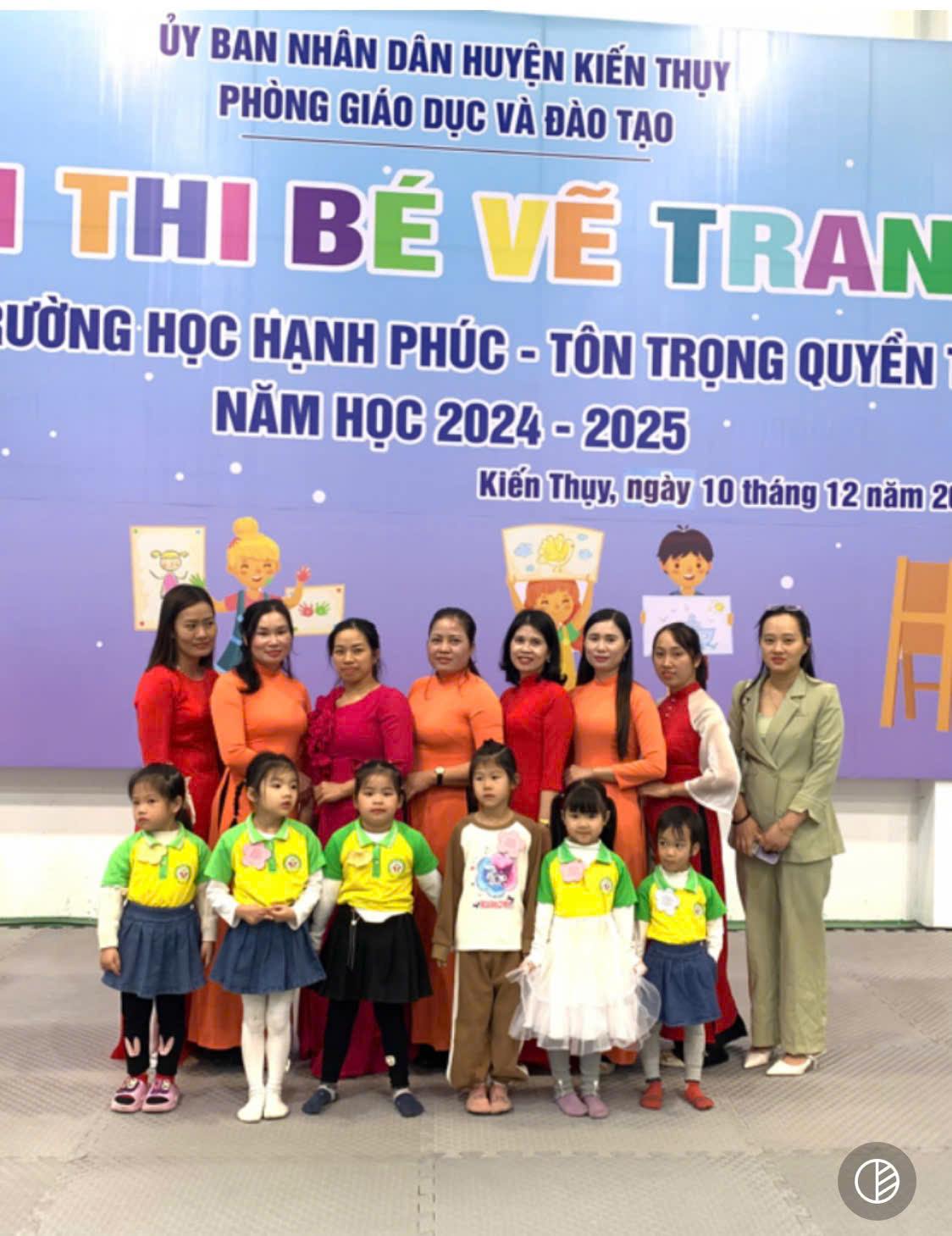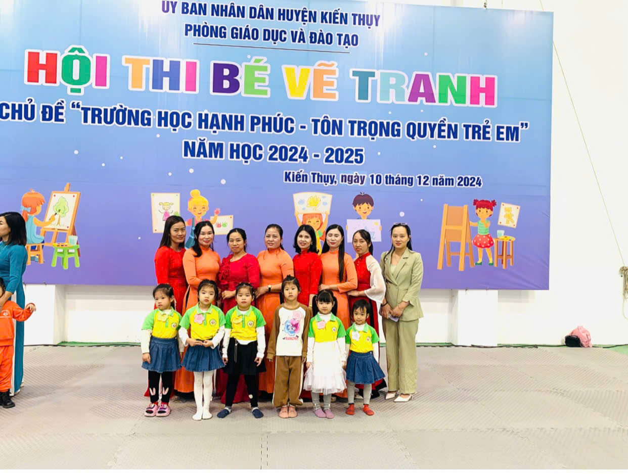 Ngày 10/12/2024 các bé trường mầm non Thanh Sơn tham dự Hội thi vẽ tranh cho trẻ Mẫu giáo chủ đề “Trường học hạnh phúc - Tôn trọng quyền trẻ em” cấp huyện. Tham dự Hội thi có 6 cháu được lựa chọn từ hội thi cấp trường thuộc các khối 3 tuổi, 4 tuổi, 5 tuổi, cụ thể: 1 cháu 3 tuổi, 2 cháu 4 tuổi và 3 cháu 5 tuổi. Tham dự hội thi, các bé được thoả sức sáng tạo, được thể hiện cảm xúc, ý tưởng, ước mơ của mình về một ngôi trường hạnh phúc. Kết quả của hội thi: 2 giải nhì là các bé 5 tuổi A3 và 4 tuổi B2, 4 giải khuyến khích thuộc về các bé lớp 3 tuổi, 4 tuổi và 5 tuổi. Sau đây là một số hình ảnh của hội thi: