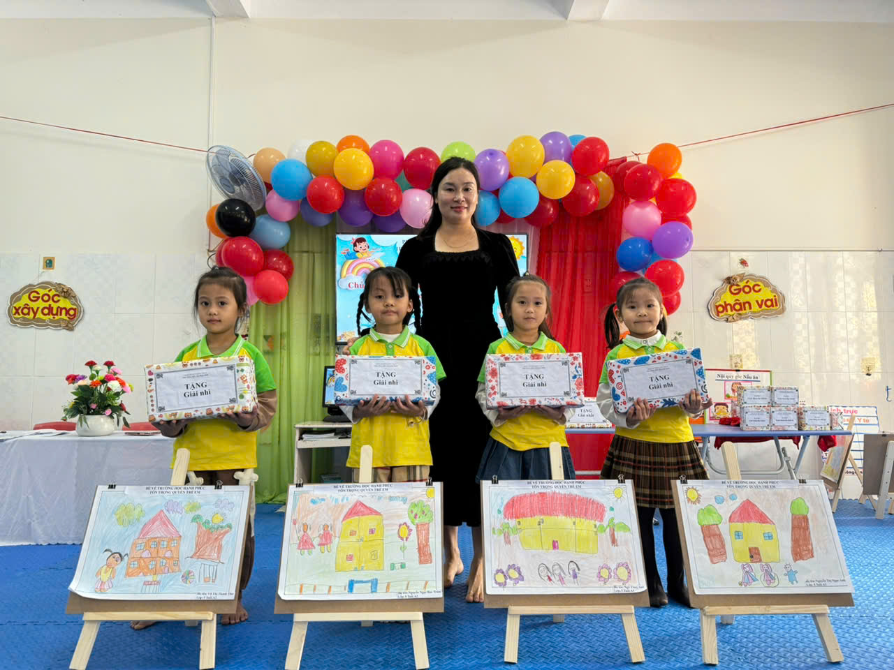 Thực hiện Kế hoạch số 64/KH-MNTS ngày 12 tháng 10 năm 2024 về chuyên đề “Xây dựng trường mầm non hạnh phúc - Tôn trọng quyền trẻ em” năm học 2024-2025 của trường mầm non Thanh Sơn; Kế hoạch số 72/KH-MNTS ngày 18 tháng 10 năm 2024 của trường mầm non Thanh Sơn về kế hoạch tổ chức hội thi vẽ tranh cho trẻ Mẫu giáo chủ đề “Bé vẽ Trường học hạnh phúc - Tôn trọng quyền trẻ em” năm học 2024-2025. Ngày 27 tháng 11 năm 2024, trường mầm non Thanh Sơn tổ chức Hội thi vẽ tranh cho trẻ Mẫu giáo chủ đề “Bé vẽ Trường học hạnh phúc - Tôn trọng quyền trẻ em”. Tham dự Hội thi có 29 cháu được lựa chọn từ hội thi cấp lớp thuộc các khối 3 tuổi, 4 tuổi, 5 tuổi. Hội thi đã diễn ra thành công tốt đẹp với sự có mặt chứng kiến của đại diện Hội cha mẹ học sinh của nhà trường. Kết quả của Hội thi: 6 giải nhất, 8 giải nhì, 6 giải ba và 9 giải khuyến khích. Sau đây là một số hình ảnh của Hội thi: